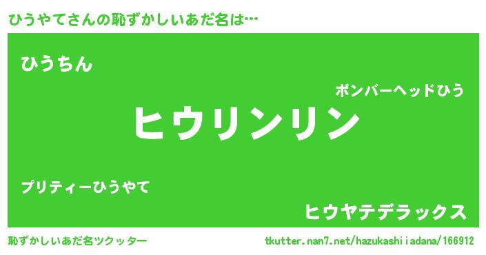 | 意味不明あだ名 | 『とにかく怪しいひうやて』 |