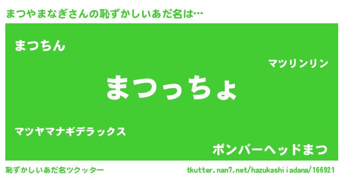 | ヘコむあだ名 | 『なまこ酢』『まつやまなぎ(笑)』 |