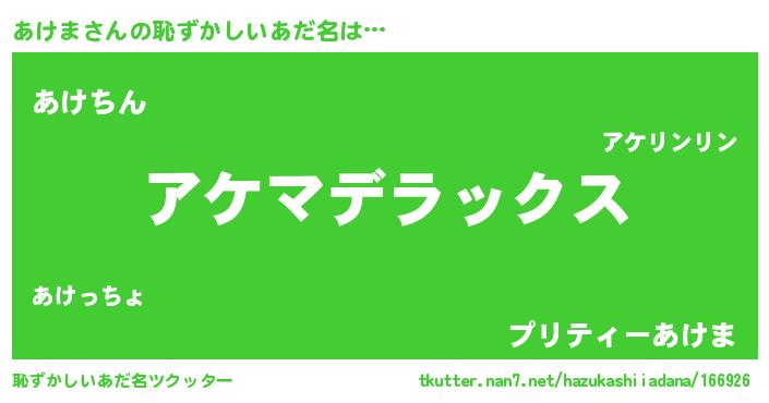 | 意味不明あだ名 | 『自称あけま』『永久保存あけま』 |