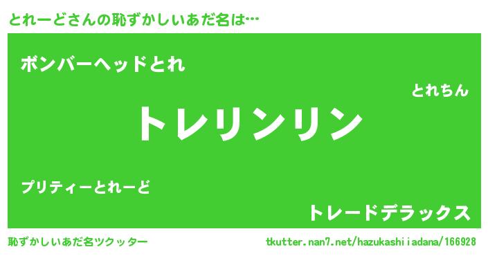 | 意味不明あだ名 | 『住所不定無職とれーど(89歳)』 |