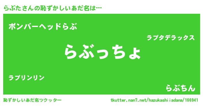 | ポケモン風あだ名 | 『ラーブイ』『ラブタダネ』 |