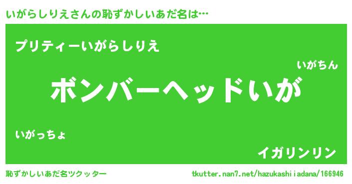 | ヘコむあだ名 | 『いがふぇ~』『いがっ子』『豆乳』 |
