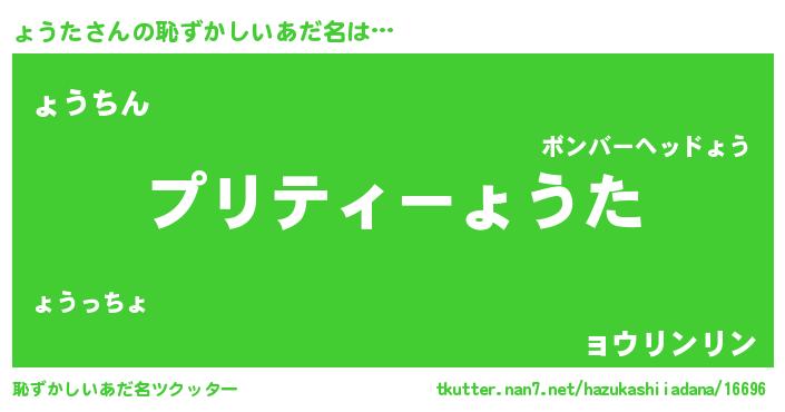 | 意味不明あだ名 | 『ペロリンょうた』『永久保存ょうた』 |