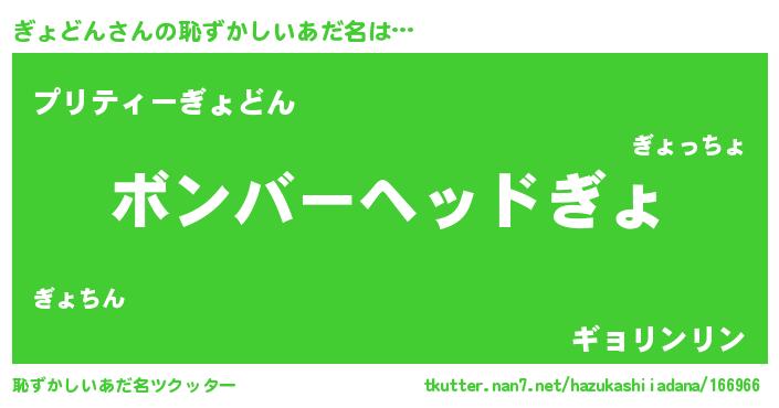 | ヒーロー風カッコイイあだ名 | 『慈愛の使者ぎょどん』『銀牙騎士ギョ』 |