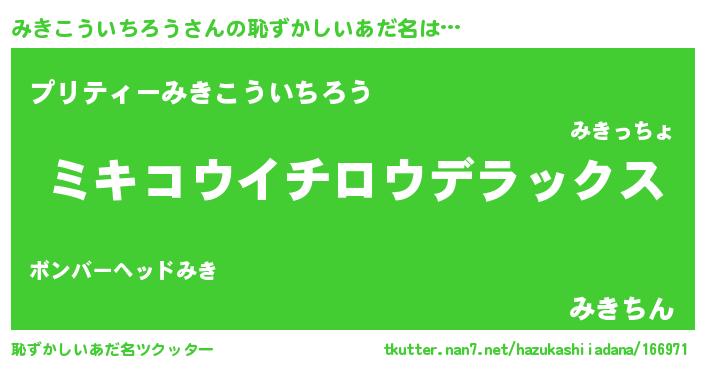 | 女子向けラノベタイトル風あだ名 | 『みきこういちろうアンティーク』 |