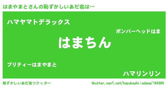 | 胡散臭い通販商品みたいなあだ名 | 『絶対に幸福をもたらす水素水…その名も「はまやまと」』 |