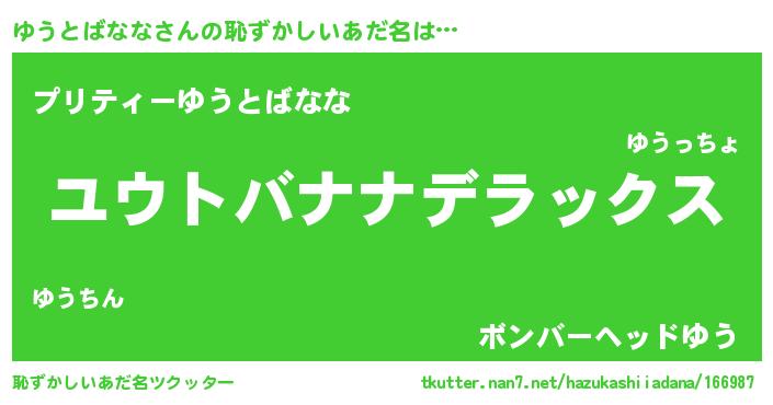| 男性向けラノベタイトル風あだ名 | 『Re:ゆうとばななから始める異世界生活』 |