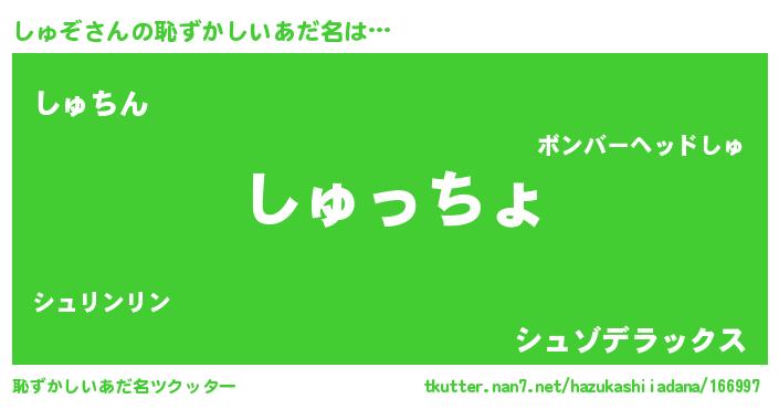| ヘコむあだ名 | 『牛乳』『しゅぞ(爆)』『しゅ太郎』 |
