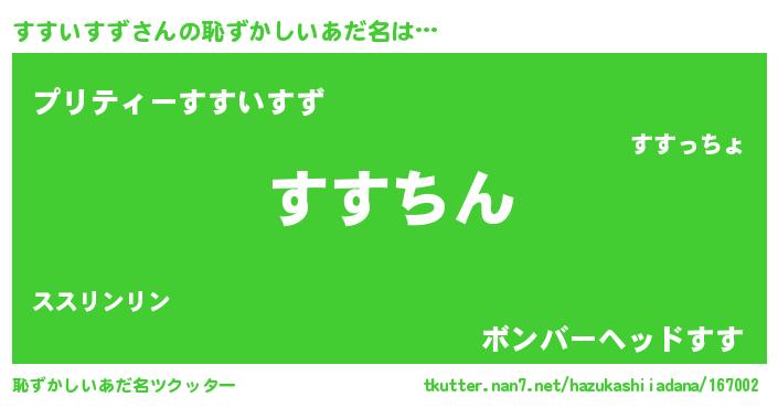 | 可愛いあだ名 | 『すすぷりん』『すすいすずママ』 |