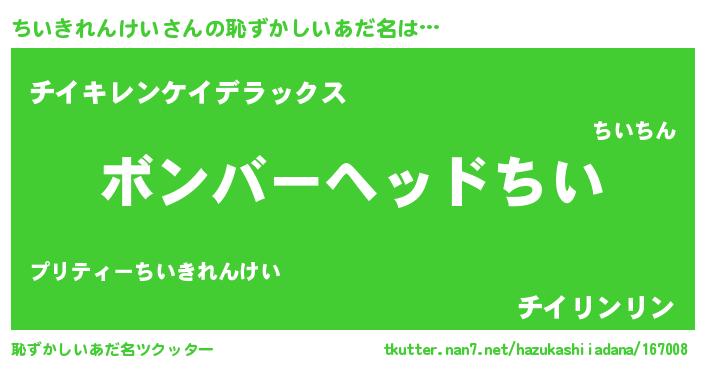 | ヘコむあだ名 | 『ちい太郎』『ちいきれんけい(震え声)』 |