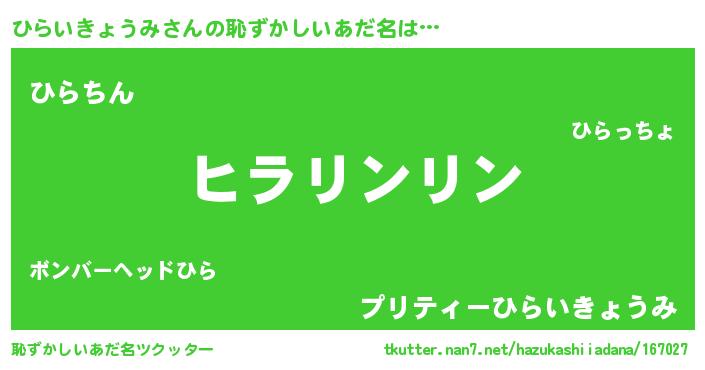 | ヘコむあだ名 | 『ひらを』『ひらいきょうみ(爆)』 |