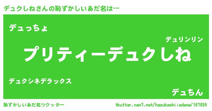 | ヘコむあだ名 | 『デュにゅー』『つくし』『デュお』 |