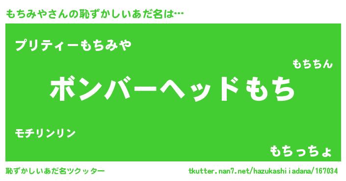 | ヒーロー風カッコイイあだ名 | 『正義の使者もちみや』『仮面モチダー』 |