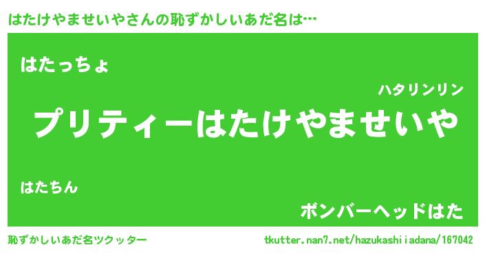 | ヘコむあだ名 | 『はたにゅー』『なまこ酢』 |