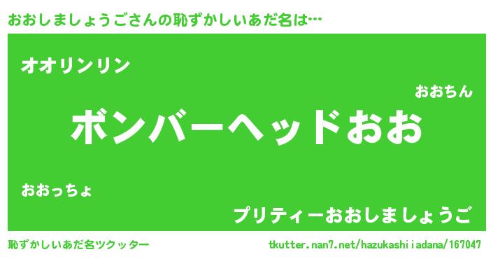 | 胡散臭い通販商品みたいなあだ名 | 『100人中100人が認めたマグネット磁石…その名も「おおしましょうご」』 |