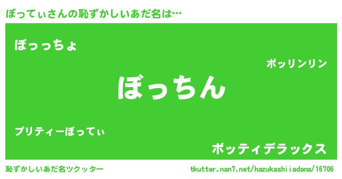 | 意味不明あだ名 | 『永久保存ぼってぃ』『自称ぼってぃ』 |