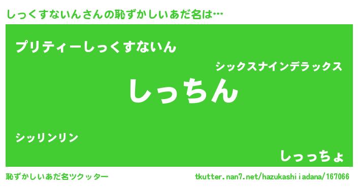 | ヘコむあだ名 | 『しっくすないん(遠い目)』『しっにー』 |