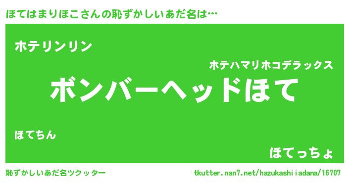 | 女子向けラノベタイトル風あだ名 | 『ほてはまりほこ恋絵巻』 |