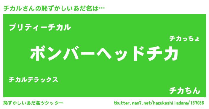 | ヘコむあだ名 | 『チカもー』『チカル(小並感)』 |