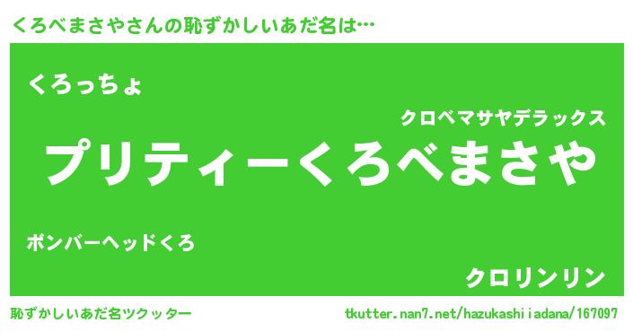 | ヒーロー風カッコイイあだ名 | 『スーパークロベマサヤ』『仮面クロダー』 |