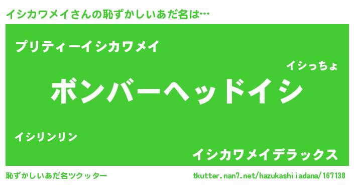 | ヘコむあだ名 | 『イシもー』『酢こんぶ』 |