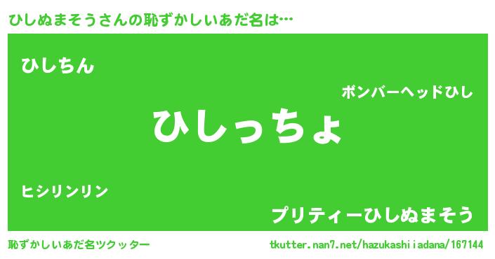 | ファンタジー風あだ名 | 『エターナルヒシヌマソウー』 |