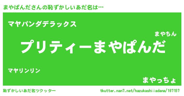 | ヒーロー風カッコイイあだ名 | 『スーパーマヤパンダ』『仮面マヤダー』 |
