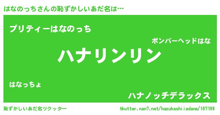 | ポケモン風あだ名 | 『ヒハナノッチ』『ハナチュウ』 |