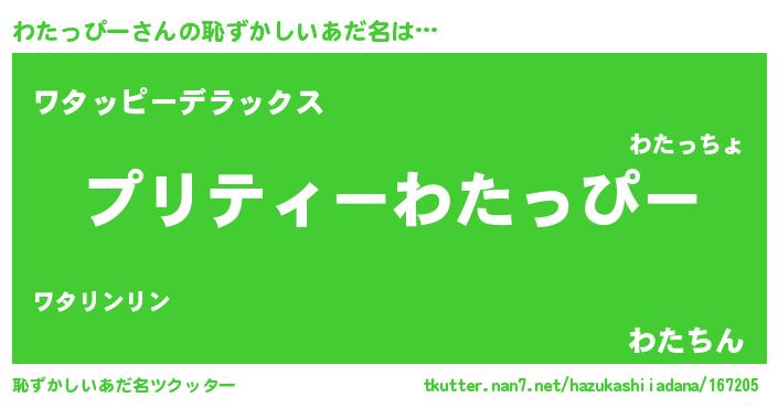 | 意味不明あだ名 | 『ペロリンわたっぴー』『自称わたっぴー』 |