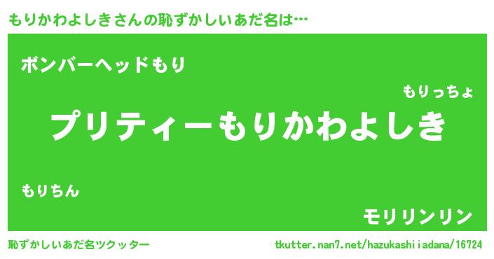 | 男性向けラノベタイトル風あだ名 | 『転生したらもりかわよしきだった件』 |