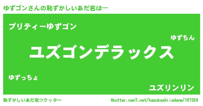 | ヒーロー風カッコイイあだ名 | 『究極戦士ユズゴン』『スーパーユズゴン』 |