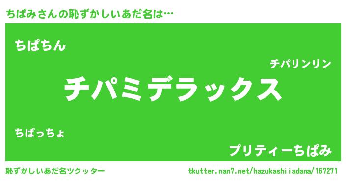 | ヘコむあだ名 | 『ちぱみ(爆)』『ちぱにゅー』 |