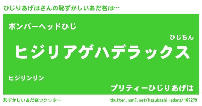 | ヘコむあだ名 | 『ひじっふぃ~』『ひじりあげは(笑)』 |