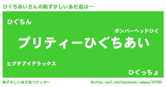 | ヘコむあだ名 | 『ひぐもー』『ひぐちあい(苦笑)』 |