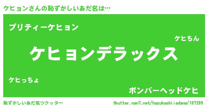 | ヘコむあだ名 | 『ケヒもー』『ケヒョン(苦笑)』 |