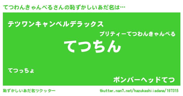 | 意味不明あだ名 | 『永久保存てつわんきゃんべる』 |