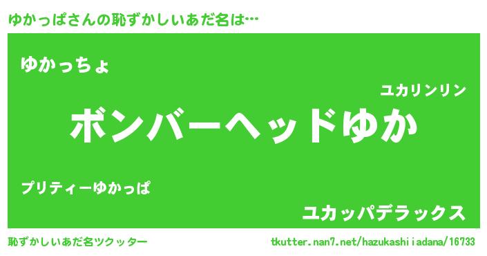 | 欧米人風あだ名 | 『ダニエルゆかっぱ』『ウサインゆかっぱ』 |