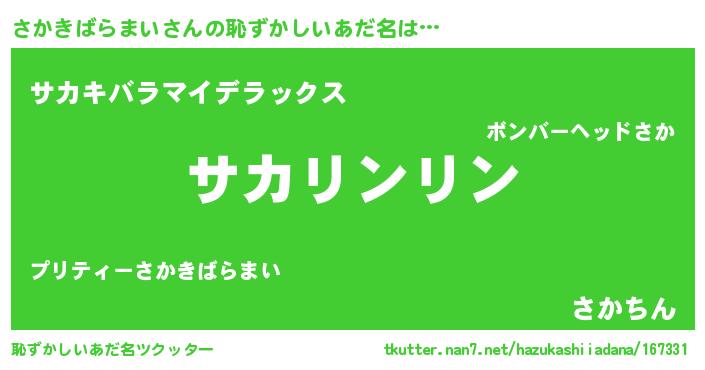 | 意味不明あだ名 | 『とにかく怪しいさかきばらまい』 |