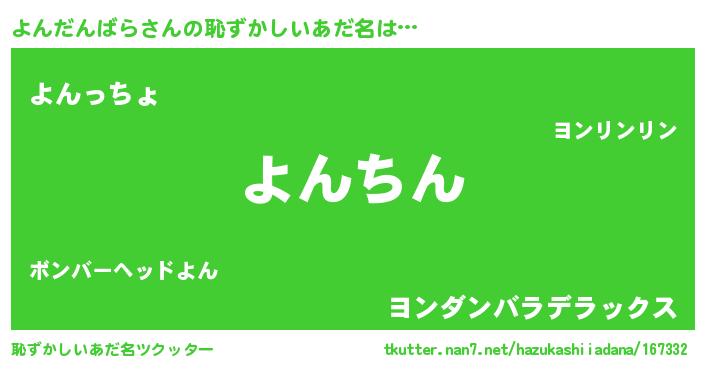 | 意味不明あだ名 | 『住所不定無職よんだんばら(79歳)』 |