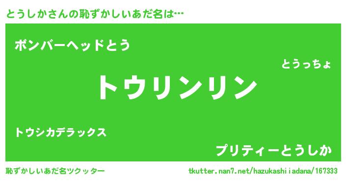 | 女子向けラノベタイトル風あだ名 | 『とうしか様がみてる』 |