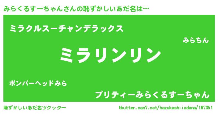 | ヘコむあだ名 | 『みらっぺ』『みらにゅー』『牛乳』 |