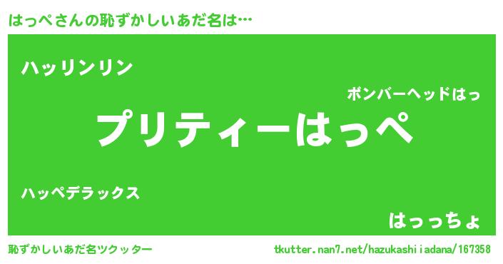 | 意味不明あだ名 | 『住所不定無職はっぺ(1歳)』 |