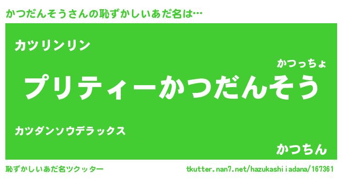 | 男性向けラノベタイトル風あだ名 | 『かつだんそうの憂鬱』 |