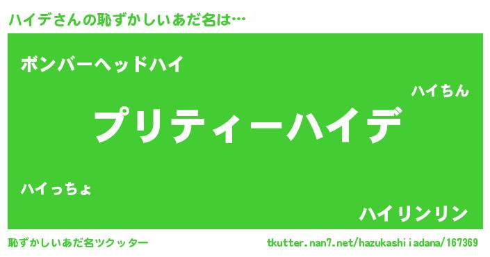| ヒーロー風カッコイイあだ名 | 『スーパーハイデ』『正義の使者ハイデ』 |