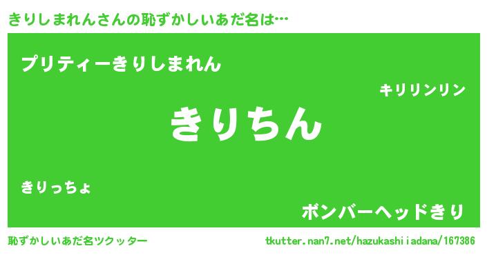 | ヘコむあだ名 | 『きりしまれん(爆)』『きりふぇ~』 |