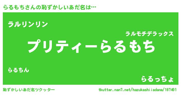 | ヘコむあだ名 | 『らるもー』『らる太郎』『牛乳』 |