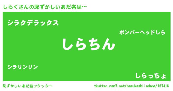 | 意味不明あだ名 | 『永久保存しらく』『自称しらく』 |
