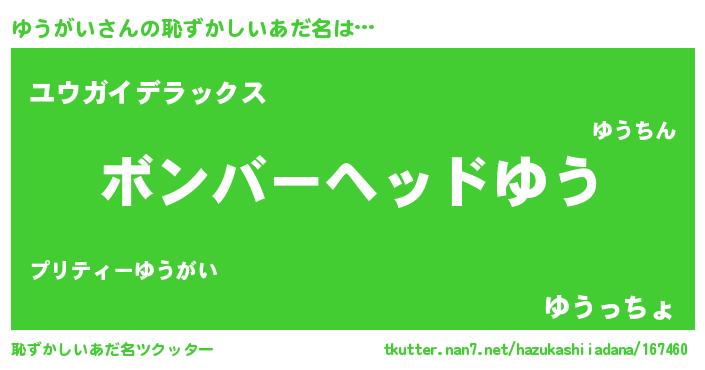 | ヒーロー風カッコイイあだ名 | 『慈愛の使者ゆうがい』『仮面ユウダー』 |