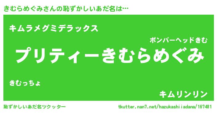 | 女子向けラノベタイトル風あだ名 | 『(仮)きむらめぐみのやんごとなき事情』 |
