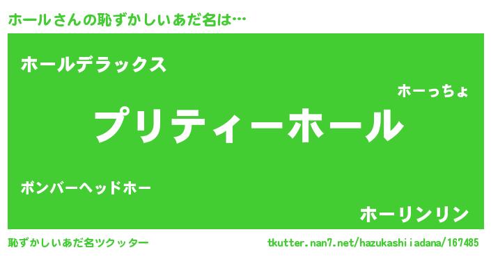 | 意味不明あだ名 | 『ペロリンホール』『自称ホール』 |